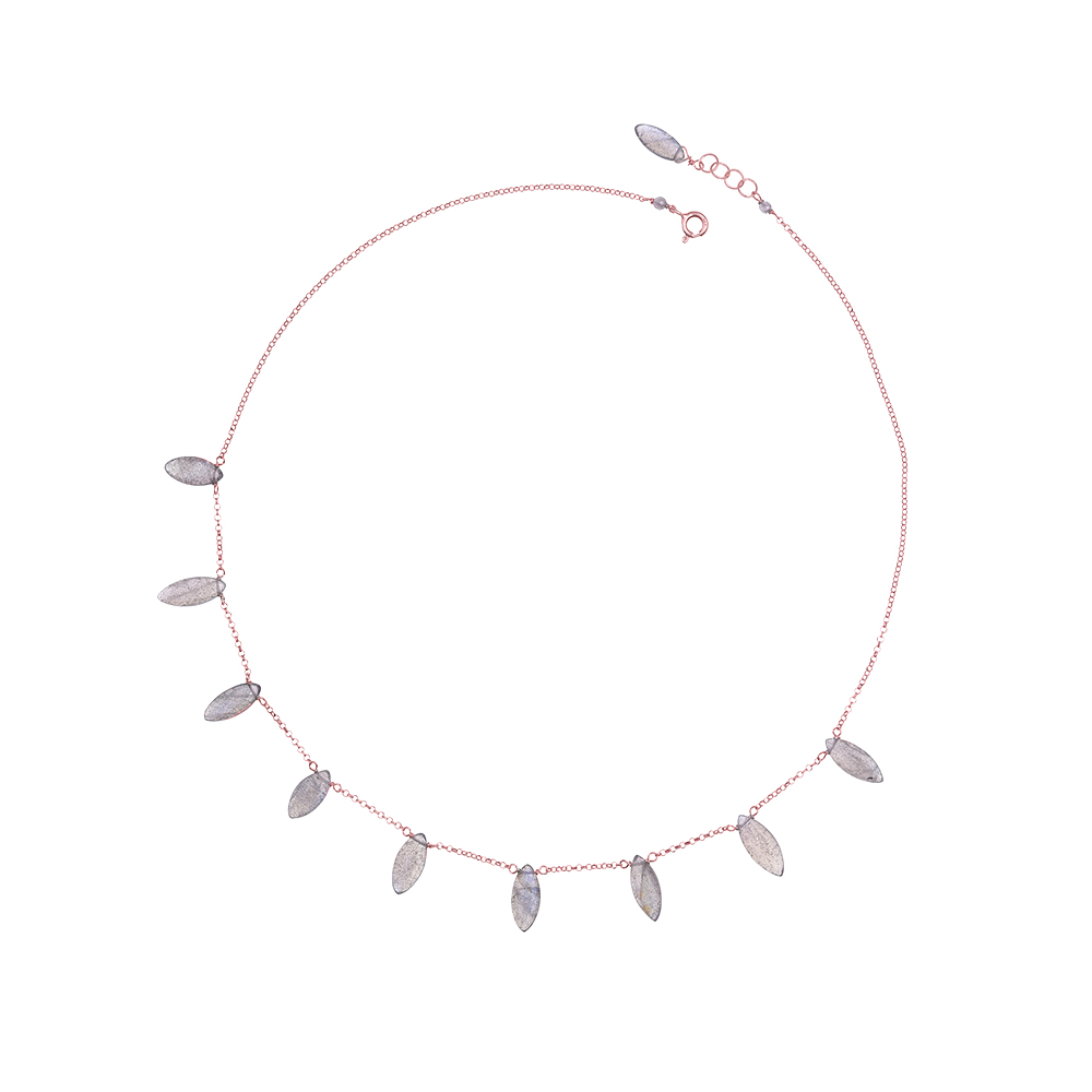 Girocollo ORO ROSA 18 carati con pietre preziose a punta di lancia, abbinabili agli orecchini della linea WONDER per un look alternativo e molto personale.