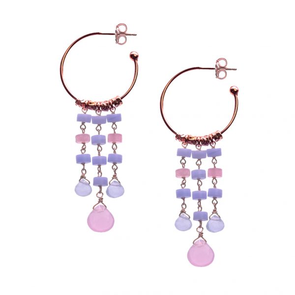 Orecchini con attacco a cerchietto 2cm di diametro con cascata di 3 fili di pietre chandelier Linea Magic, per ogni istante della giornata.